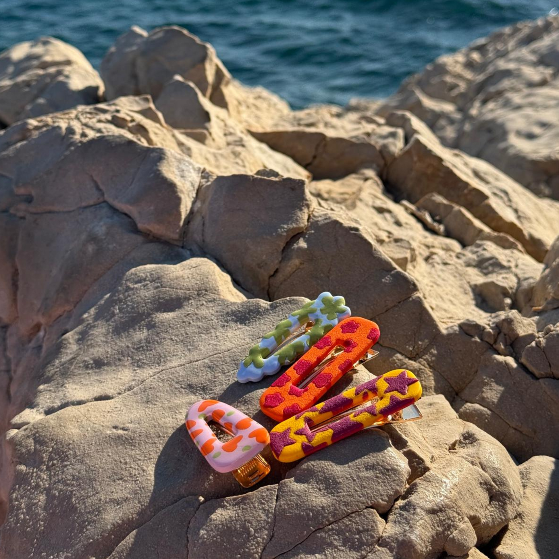 Trop heureuse de vous présenter la 3ème petite collection des barrettes. Pour cet été, vous l’aurez compris, j’avais envie de couleurs.