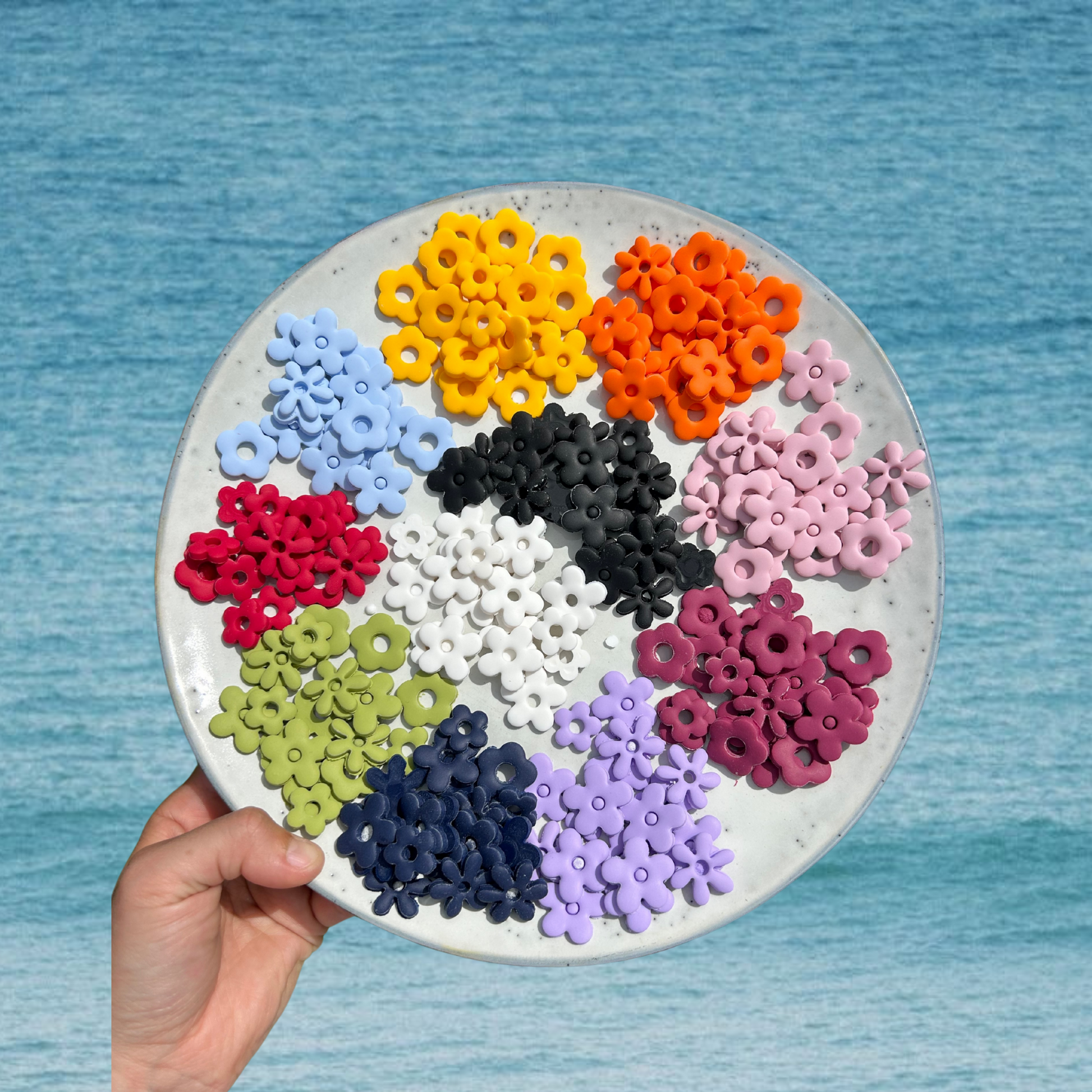 Les boucles d'oreilles Flower Power sont notre best-seller. Hiver comme été, cette paire de boucle est indémodable. C'est la paire signature Cool & Colorful. Chaque boucles d’oreilles est unique, elles sont faites à la main, dans nos ateliers en Savoie.